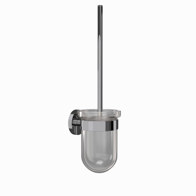 Sleek W.C. brush holder in black chrome finish from Jaquar's Continental accessories range. This modern bathroom fixture discreetly stores your toilet brush while adding contemporary style. The dark chrome coating resists fingerprints and maintains its polished look. Engineered for durability and easy cleaning, it's a practical accessory that keeps your bathroom organized and looking sharp.