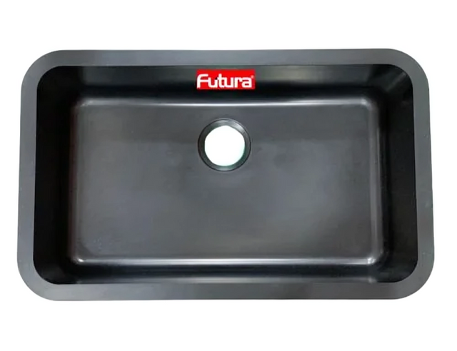 1.0 BOWL WITHOUT DRAIN BOARD WITH FA-05A WASTE COUPLING (DEPTH 8.5INCH) - FUTURA - ( BLACK - NATURAL QUARTZ SERIES - 780x475 mm - 31.2inchX19inch )