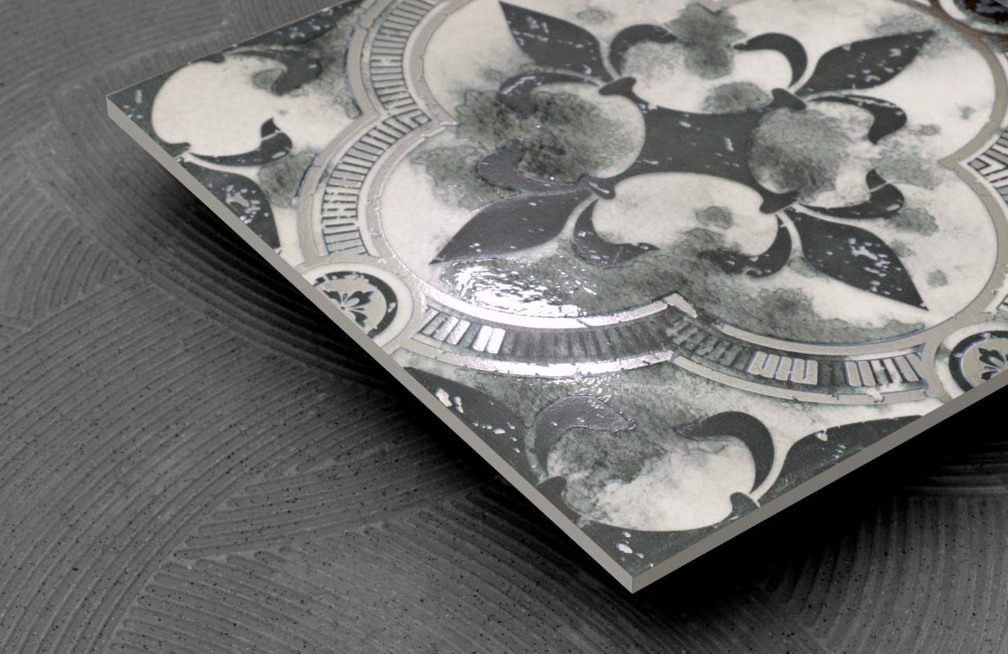 MARRAKECH SILVER HL - DESIGNER TILES - ( - 3RD FRD GLD & SILVR EDITN VITR.TILE - 300x300 mm - 12inchX12inch )