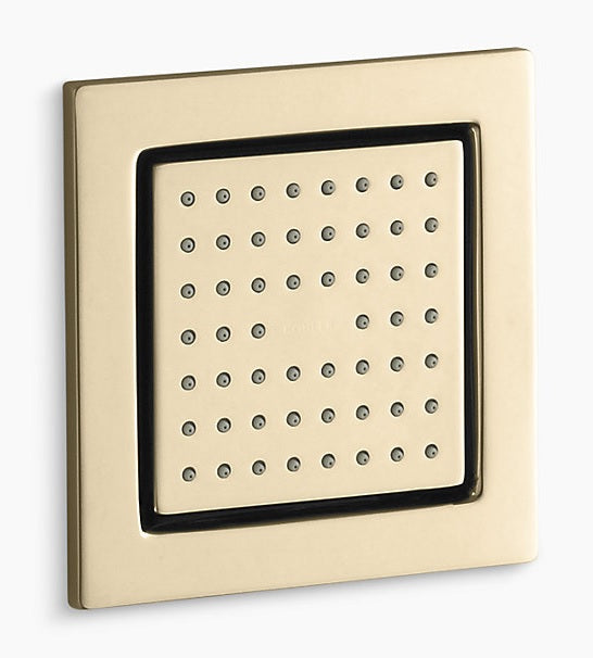 Transform your shower into a luxurious retreat with the Kohler WaterTile™ Square Body Spray. Featuring 54 precisely designed nozzles, this wall-mounted spray delivers a calming hydrotherapy mist that refreshes and revitalizes. Its sleek, low-profile square shape fits flush against your wall, offering both style and seamless integration. Finished in elegant Vibrant French Gold, this premium fixture brings a touch of modern sophistication while providing a spa-quality experience every day. Elevate your bathroom with this perfect blend of design and function.