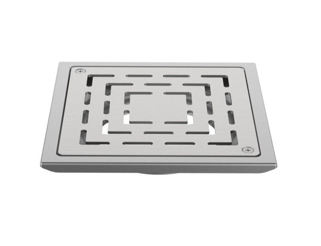 SQURE DRAINER BRUSHED W/O COCKROACH TRAP - VIKING - ( CHR - - 150x150 mm - 6inchX6inch )