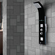 THERMO SHOWER PANEL W/BUTTON SPT - JAQUAR FAUCETS - ( S.STEEL BLACK - GLASS BLACK -1400X250mm - 56inchx10inch )