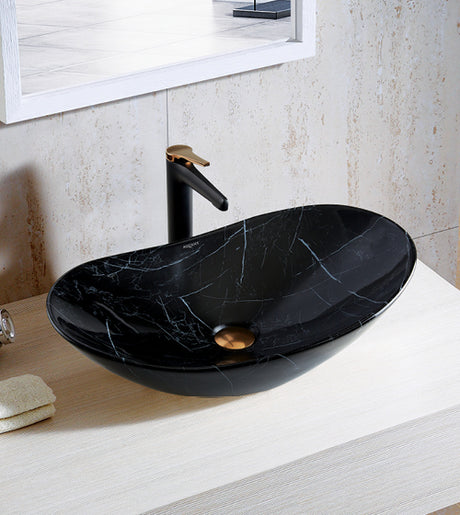 CERAMIC WASH BASIN - AQUANT - ( MARQUINA MARBLE GLOSSY - - 600X370 mm - 24inchX14.8inch )