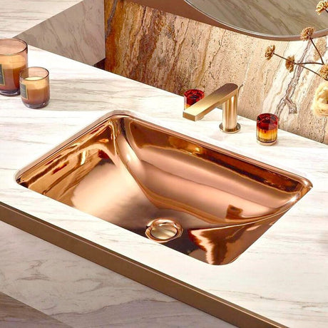 STAINLESS STEEL SQUARE WASH BASIN - AQUANT - ( MATT ROSE GOLD - - 525x325 mm - 21inchX13inch )
