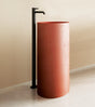 A sturdy freestanding concrete pedestal designed for outdoor or indoor use. Features a rough textured exterior finish that adds character and visual interest. Includes a pop-up waste coupling for convenient drainage. The terracotta red color complements various décor styles. Dimensions: 850x400 mm (34"x16"). Built to last with durable concrete construction, this pedestal works as a planter base, decorative stand, or functional garden feature.