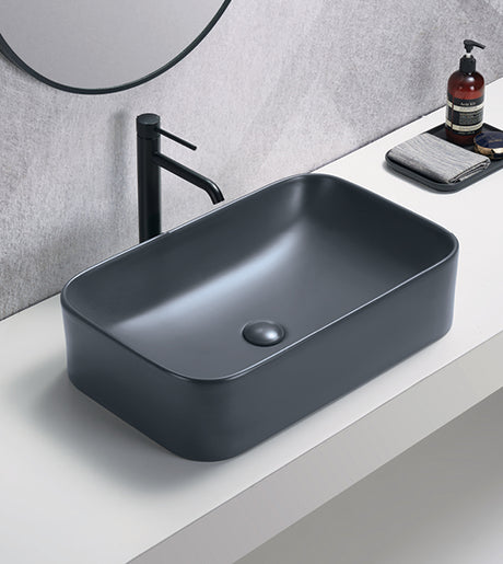 TABLE MOUNTED CERAMIC WASH BASIN - AQUANT-( MATT GREY-610x380x150 mm - 24.4inchX15.2inchX6inch )