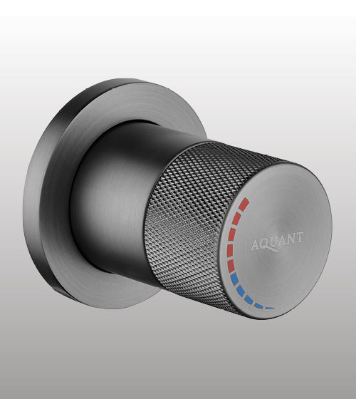 This wall-mounted deusch mixer from Aquant features a progressive cartridge, offering precise control over water flow and temperature. Finished in sophisticated graphite grey, its solid brass construction ensures durability and corrosion resistance. Designed for seamless integration, it suits contemporary bathroom installations demanding both style and reliable performance.