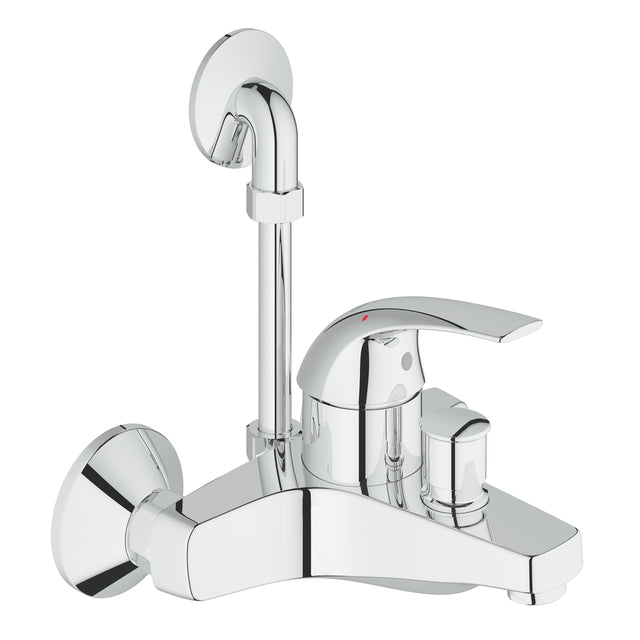 The BAUCURVE 1-Handle Bath/Shower Mixer with L Bend by GROHE seamlessly combines modern design with precise water control. Its single-handle operation allows effortless adjustment of water temperature and flow, enhancing user convenience. Finished in durable chrome, this mixer offers long-lasting resistance to wear and tarnish. Designed for easy installation and reliable performance, it is ideal for contemporary bathrooms seeking both style and functionality. The compact 0x15 mm fitting ensures compatibility and sleek integration with existing plumbing systems.