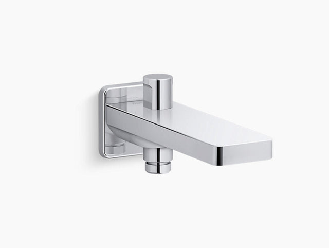 Elevate your bathroom experience with the KOHLER Premium Parallel Bath Spout featuring a built-in diverter. Crafted in polished chrome, this spout offers a sleek, modern look alongside durable performance. Its integrated diverter lets you easily switch water flow, enhancing convenience and control. With precise dimensions for seamless installation, this spout combines style and function for a sophisticated bathing experience.