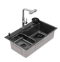 1.0 BOWL SS KITCHEN SINK WITH GR-001 WAST COUPLING , GR-003 PULLOUT TALL FAUCET,FR-004 SS SMALL BOWL, GR-006 CHOPPING BOARD, GR-008 GLASS RINSER & GR-010 LIQUID SOAP DISPENSER - FUTURA - ( BLACK - GLASS RINSER SINK - 750x450 mm - 30inchX18inch )
