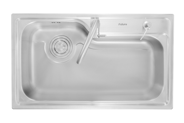 SS SINK 1.0 BOWL W/O DRAIN BOARD (DEPTH 9) WITH DS-001 CHOPPING BOARD, FA-03C FAUCET, DS-002 SMALL WIRE BASKET, DS-004 LIQUID SOAP DISPENSER - FUTURA - ( SS FINISH - DESIGNER SINK - 850x500 mm - 33.5inchX20inch ) is backordered and will ship as soon as it is back in stock.