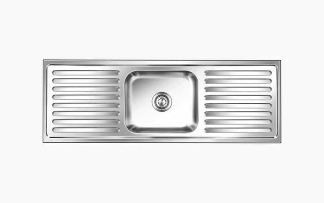 SS SINK 1.0 BOWL WITH 2 DRAIN BOARD (DEPTH 8.5 ) ELEGANT GLORY BIG - NIRALI - ( GLOSSY - POPULAR SINK RANGE - 1500x510 mm - 59inchX20inch )