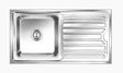 SS SINK 1 BOWL WITH DRAINBOARD (DEPTH 8INCH) OLYMPIA SMALL - NIRALI - ( SATIN - SILENT SQUARE - 950x510 mm - 37.5inchX20inch )