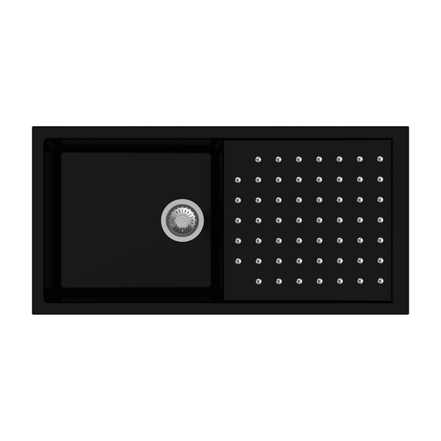 Elevate your kitchen with the QUARTZ 1.0 Bowl featuring a 9-inch depth and durable steel balls for smooth drainage. Crafted from Granite Metallic Nera, this 1000x500 mm (40x20 inch) sink blends robust strength with sleek style, making it an essential upgrade for both functionality and modern aesthetics. Experience lasting performance and effortless maintenance with this premium CARYSIL design.