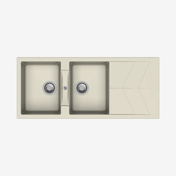 QUARTZ 2.0 BOWL WITH DRAINBOARD(DEPTH 8INCH) - CARYSIL - ( GRANITE CHAMPAGNE - JAZZ - 1160x500 mm - 46inchX20inch )