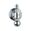 Polished robe hook in gleaming chrome, from Jaquar's Queens accessory collection. This single-hook fixture provides convenient storage for robes, towels, and garments in bathrooms and bedrooms. The bright chrome finish adds a clean, classic touch to any décor. Built for strength and easy installation, it's a timeless accessory that combines functionality with lasting style.