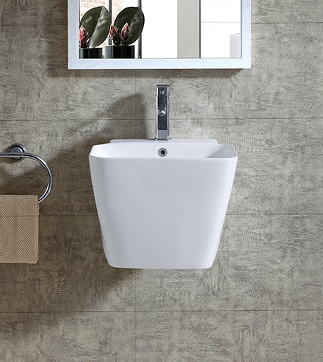 WALL HUNG WASH BASIN WHITE (370MM DEPTH) - AQUANT - ( WHITE - - 460x420 mm - 18inchX16.5inch )