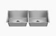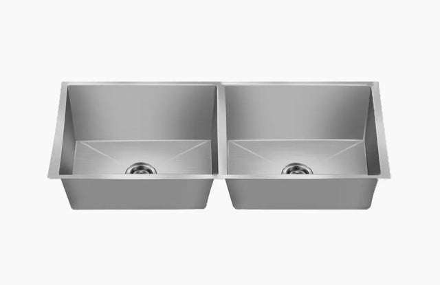 Crafted from durable 1mm thick stainless steel, this Monet Big double bowl sink offers a spacious 40.2" x 20.4" design without a drainboard, perfect for maximizing countertop space. Its 9-inch depth accommodates large pots and pans with ease, while the satin finish enhances your kitchen’s modern look. Part of the Magnus Elite range, this robust sink combines style and functionality to elevate your cooking experience.