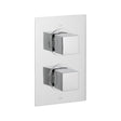 Concealed thermostatic shower set featuring two inlet connections and one outlet with an additional free outlet, complete with shut-off valve. Chrome finish with 20x12mm (0.75" x 0.5") dimensions. Vado brand quality ensures reliable performance and durability. Perfect for modern bathroom installations where space-saving and precise temperature control are essential. Ideal for mixed water supply systems requiring professional-grade mixing valves.