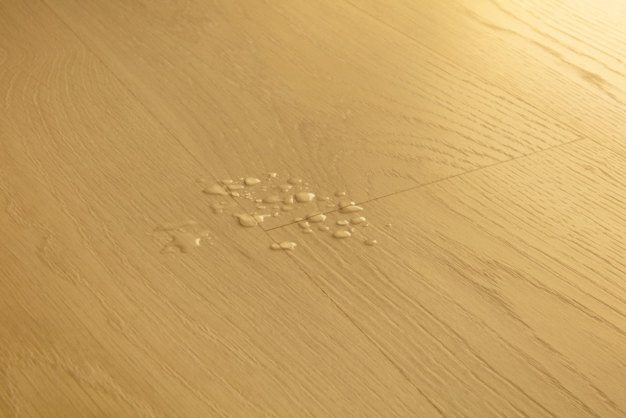 • Use a damp mop — never soak the floor; excess water can seep into seams and cause swelling.
