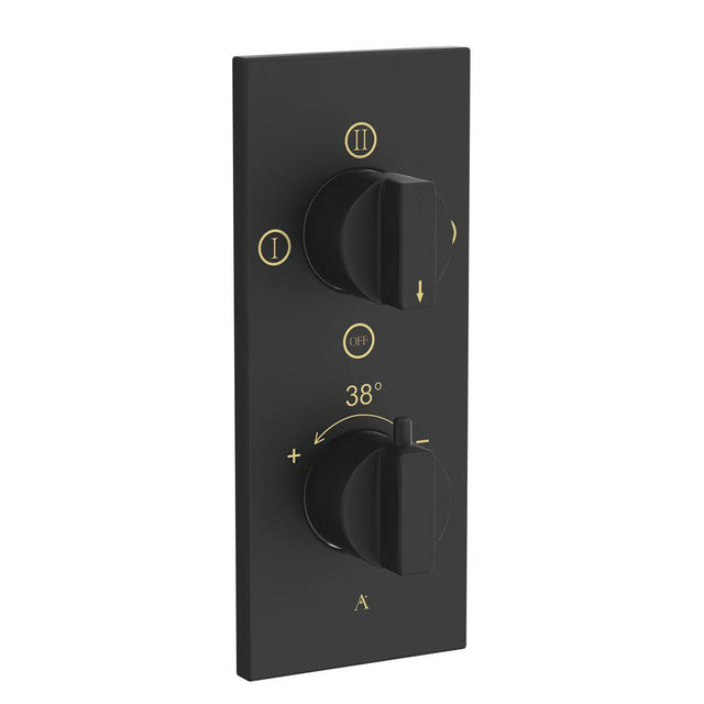 Master your shower temperature with the Artize Thermostatic Shower Mixer. This advanced 3-way system lets you control water flow to multiple outlets while maintaining precise temperature stability. The black matte finish delivers a contemporary look that complements any modern bathroom. Equipped with a convenient shut-off valve, it provides safety and water efficiency.
