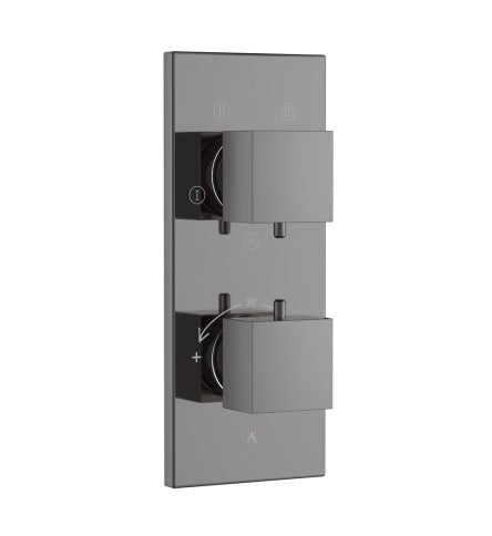 Experience precise temperature control with this concealed thermostat set from Artize. Featuring 2 inputs and 4 outputs plus one free outlet, it delivers flexible water distribution for multiple fixtures. The black chrome finish integrates seamlessly into modern bathrooms while the built-in shut-off valve provides safety and convenience. Ideal for sophisticated bathroom setups requiring reliable temperature management and efficient water flow control.